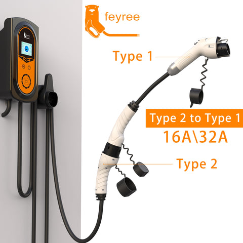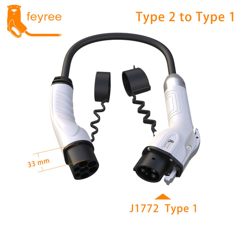 Type 2 to Type 1 Charging Cable Adapter for EV Charger Plug 3.5KW or 7KW